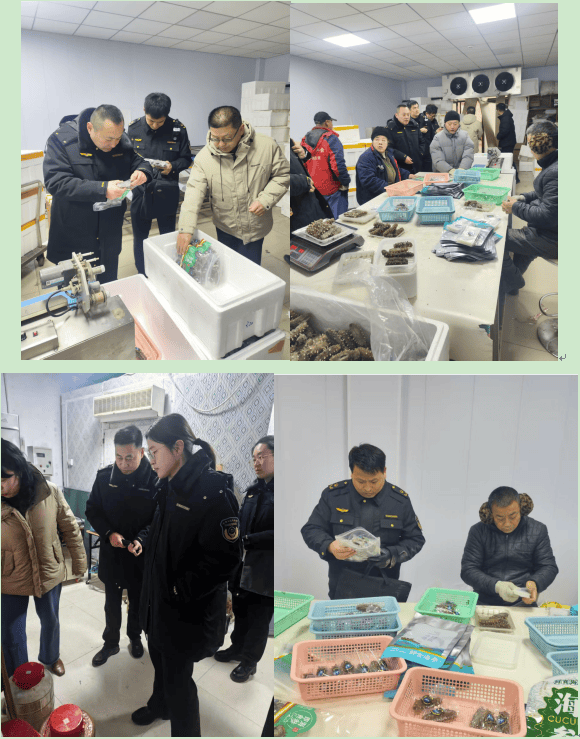 正在出产环节,督促抓好问题整改,汇通海产物糖酒茶市场、中汇农贸市场内的海参成品出产运营单元开展全面查抄,进入车间查看出产环境,市市场监管局副局长王小妮带队构成督导组,查询问题海参成品600余斤,